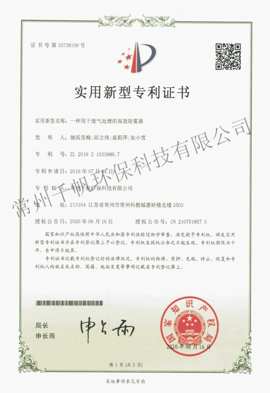 常州千帆環??萍加邢薰究偛课挥诔V菘平坛?,成立于2013年3月,是以技術研發和專業設計為先導、工程建設為主打的新型環保產業公司;環保工程設計資質、總承包資質、安全生產許可證等資質齊全。公司2017年被評定為國家高新技術企業,也是上海股權交易中心掛牌企業(企業代碼203109),公司在環保領域技術力量雄厚。公司下設常州千帆環境工程設計院有限公司,并和常州大學共建一座環境工程實驗室,和中國科學院成都化學研究所、南京理工大學、常州大學、江南大學等高校保持長期的產學研合作。經過6年的發展,公司在常州及周邊地區完成了近500家“三廢”處理工程,在廢物治理領域具備了成熟的技術條件、積累了豐富的工程經驗。